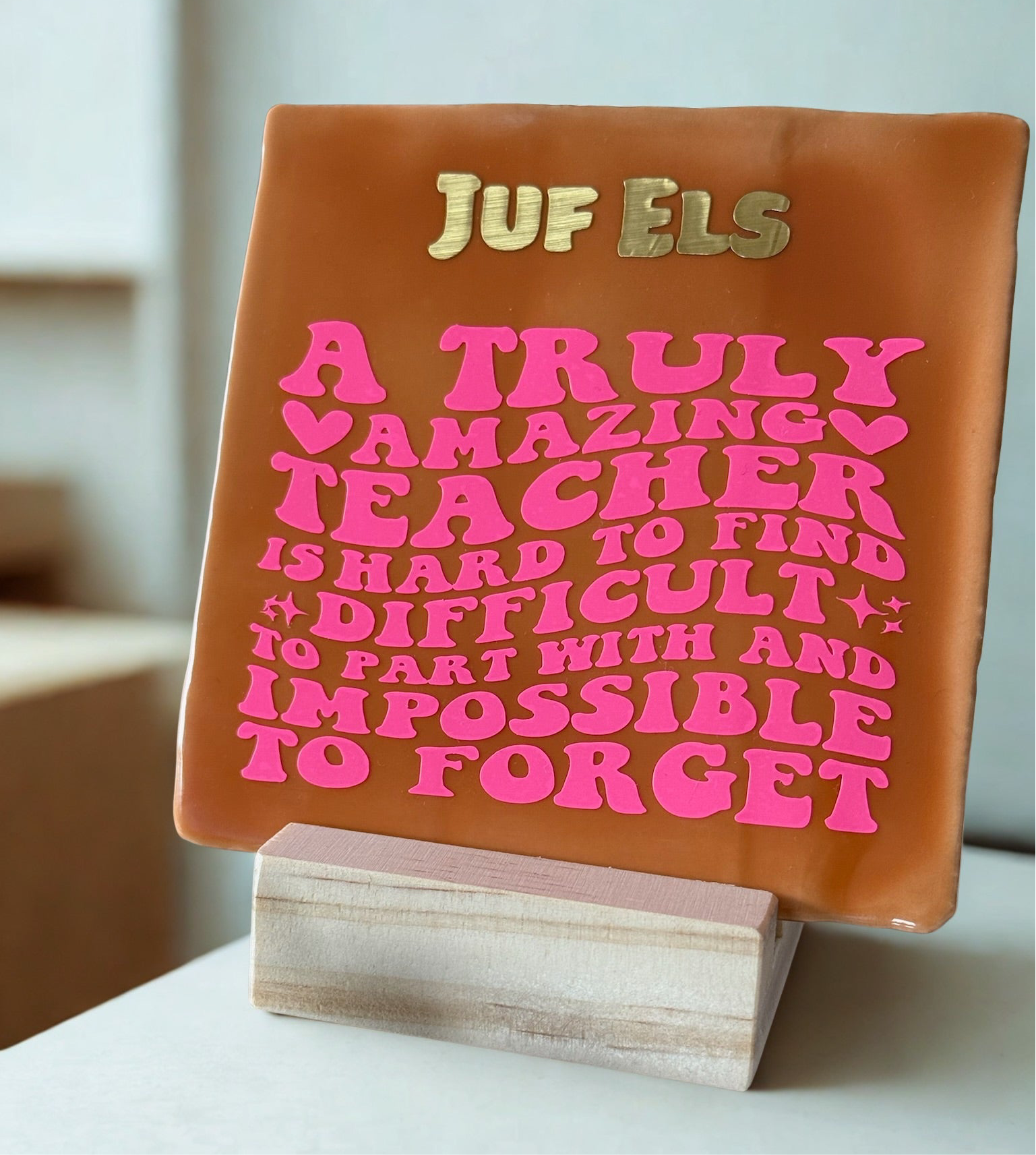 Show your child’s teacher how much they mean with this cheerful thank-you tile. Perfect as an end-of-year gift, it’s a lasting keepsake for the classroom or at home.
